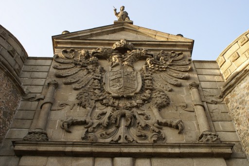 Me he citado aquí con Daddy y llego con un poco de retraso porque me entretuve con el iBook más de lo que esperaba y se me pasó la hora. En todo caso, es una suerte que esta puerta de la muralla no se encuentre lejos del piso. Es la entrada más bella y emblemática de la ciudad, de estilo renacentista, reconstruida sobre lo que debió ser una entrada de estilo árabe. Sobre dos solemnes torreones de mampostería. La portada se corona con el escudo de la ciudad, un águila bicéfala. Tiene una denominación rara que no sé pronunciar todavía en español ni conozco su traducción en inglés, si es que la tiene. El nombre es algo así como “Bio sacred”, que he traducido al inglés sería como “Sacred life”, “vida sagrada” e interpreto como “puerta del cielo”. Lo que no me parece que tenga mucho sentido, ya que no parece que sea un sitio con mucho contenido religioso, aparte de la figura del ángel que lo corona, aunque las pocas veces que he hablado con Yuly sobre las costumbres de España, supongo que tampoco me sorprende que sea así. En todo caso, es la principal puerta de la muralla que rodea a la ciudad, cerrada a los vehículos, pero la han abierto vías de acceso a derecha e izquierda para el tránsito. Debido a su situación por el interior de la puerta no pasa casi nadie.