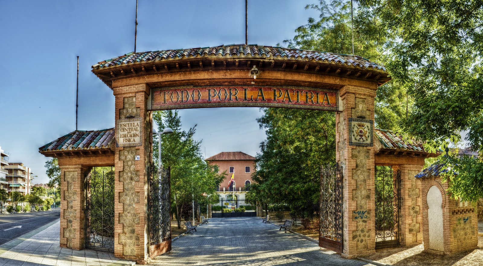 La Escuela Central de Educación Física se encontraba divida por la calle General Villalba. si a un lado de la calle se encontraba la zona de deportes, al otro se encontraba la zona administrativa y de residencia de los soldados
