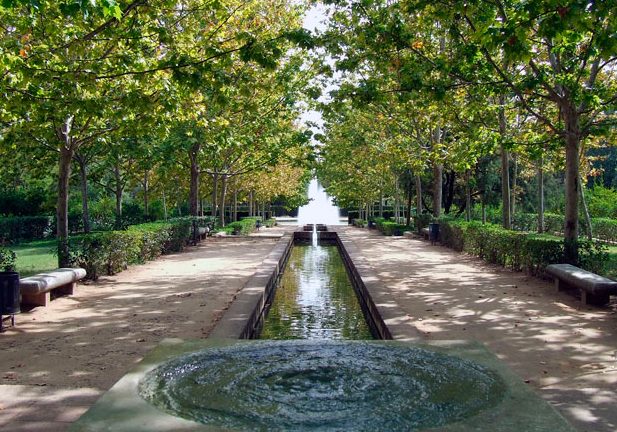 Me lleva por el camino de baldosas, pero hacia abajo, como si quisiera que bordeásemos el estanque y no me quedase con una primera impresión, ante lo cual espero que no estropee lo idílico de este momento porque de verdad que con la visita al parque ha sumado muchos puntos en esto de su trato con las chicas, aunque como confunda sus expectativas conmigo entiendo que tiene mucho más que perder. A su favor tiene que esta tarde hace lo posible por fomentar mi curiosidad después de un final de paseo no muy acertado, porque ha sido subir hasta allá arriba para nada, pero se compensa con esto y si, además, me descubre algo nuevo, ya será el remate de una tarde maravillosa. La verdad es que no sé qué secretos esconderá el parque ni qué puede haber de interés, aunque supongo que la misma existencia del parque, su conservación, debe tener algún motivo más allá del capricho de sus gobernantes, dado que a lo largo de la Historia y por lo que he estudiado al respecto, por todo el mundo ha habido algunos un tanto excéntricos que han pretendido dejar su impronta allí donde han gobernado y no tanto por pensar en el bienestar de los habitantes del lugar. Este parque sí me parece pensado para el disfrute de la gente.
