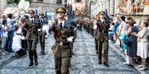 Dicen que las emociones son invisibles, contagiosas, y que, como la propia Infantería, no reconocen obstáculos. Si alguien duda de lo que digo, le invito a que observe las miradas, el sentimiento y la actitud de estos jóvenes durante las calurosas horas de la procesión.Les recordé que están en una ciudad nacida como una posición militar de gran importancia que fue capital del reino y que despierta en quien la visita una atracción especial porque en su seno guarda todos los recuerdos y todas las tradiciones de España. También les dije que aquí «la procesión va por dentro».