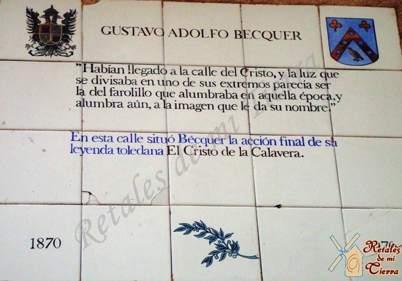 Los períodos en los que Bécquer estuvo en Toledo, vivó, junto a su hermano Valeriano, en la calle de San Ildefonso, en el corazón del casco histórico toledano, en una casa en cuyo patio, aún se conserva el laurel plantado por el genial escritor romántico.