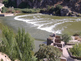 Tras esta pausa para observar los baños árabes, regresamos a la Senda ecológica de Toledo y pronto vemos, a la derecha, otra presa o azud, la cual estaba antaño asociada a los Molinos y batanes de San Sebastián. Los habitantes del barrio aledaño se dedicaban al curtido de pieles, al menos desde época árabe.