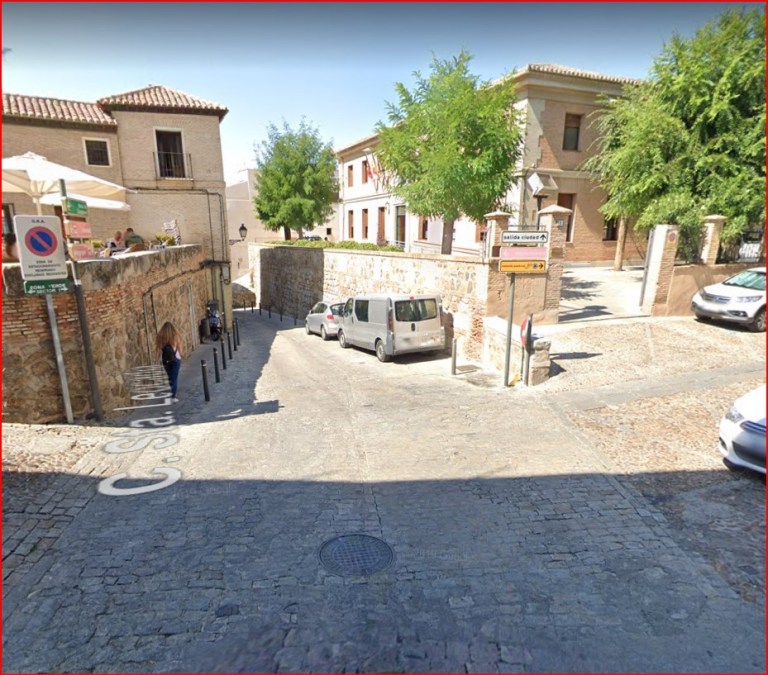 Desde este cruce no tenemos más que bajar por la calle Real del Arrabal que nos lleva directos hasta la puerta Nueva de Bisagra. Tan solo hay que seguir a los coches que bajan. No tiene pérdida.