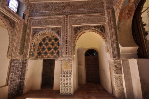 Durante todo el siglo XIV fue sometida a importantes obras de reconstrucción; de estas obras se conserva la llamada capilla del Corpus Christi, adyacente a la capilla Mayor, que alberga uno de los conjuntos decorativos mudéjares más sobresalientes de la ciudad por la diversidad de manifestaciones artísticas que se emplearon en su embellecimiento: yeserías, artesonado y pinturas murales. Posee planta rectangular, cubierta de madera y rica decoración en azulejería. Los restos del ábside son de ladrillo con decoración de arquerías ciegas (arcosolios).