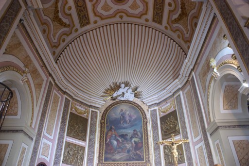 Durante el siglo XVIII se completó la transformación del templo, fundamentalmente mediante el enlucido, con decoración pictórica de los alzados interiores, la ejecución de los cielos rasos de las naves laterales y las obras que afectaron al exterior.
