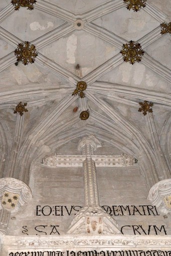 En el paso hacia la capilla mayor, es decir, hacia el crucero, el arco es apuntado, con decoración de cardinas, y hay arcos apuntados en dicha capilla. Esta diferencia estilística en el alzado se repite en las cubiertas, cuya complejidad es enorme.