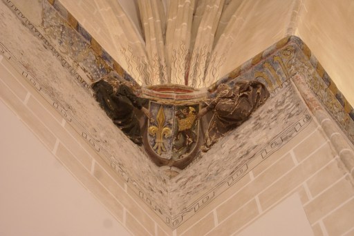 La fábrica de la capilla es gótica y consta, fundamentalmente, de un gran espacio rectangular donde se abre el presbiterio, de muy poco fondo. El espacio se halla cubierto con una bóveda de aristas. Su interior presenta una decoración mural que respondía a un esquema simple basado en la decoración de sillería fingida hasta llegar a una gran franja decorativa situada tanto por debajo como por encima de la línea de impostas, así como de la propia imposta con nacela que recorre sus muros.