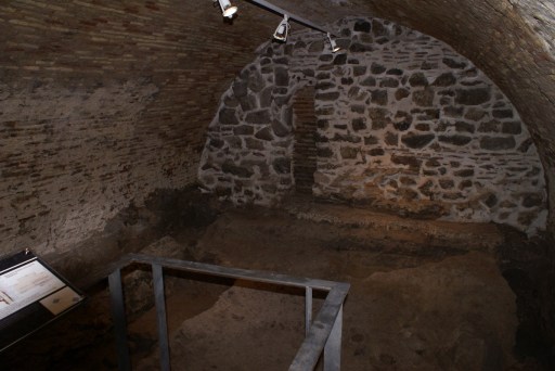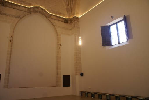 A la capilla se accede a través de un patio que también comunica con una estancia a modo de antesala que comunica, mediante una escalera con el sótano, donde pueden apreciarse restos arqueológicos de las termas romanas que existen bajo la plaza de Amador de los Ríos.