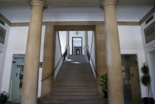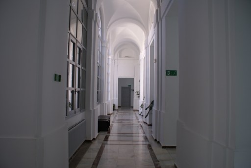 El edificio alberga cuatro patios iguales, que recuerdan el lenguaje elemental empleado por Sabatini en el Hospital General de Madrid.