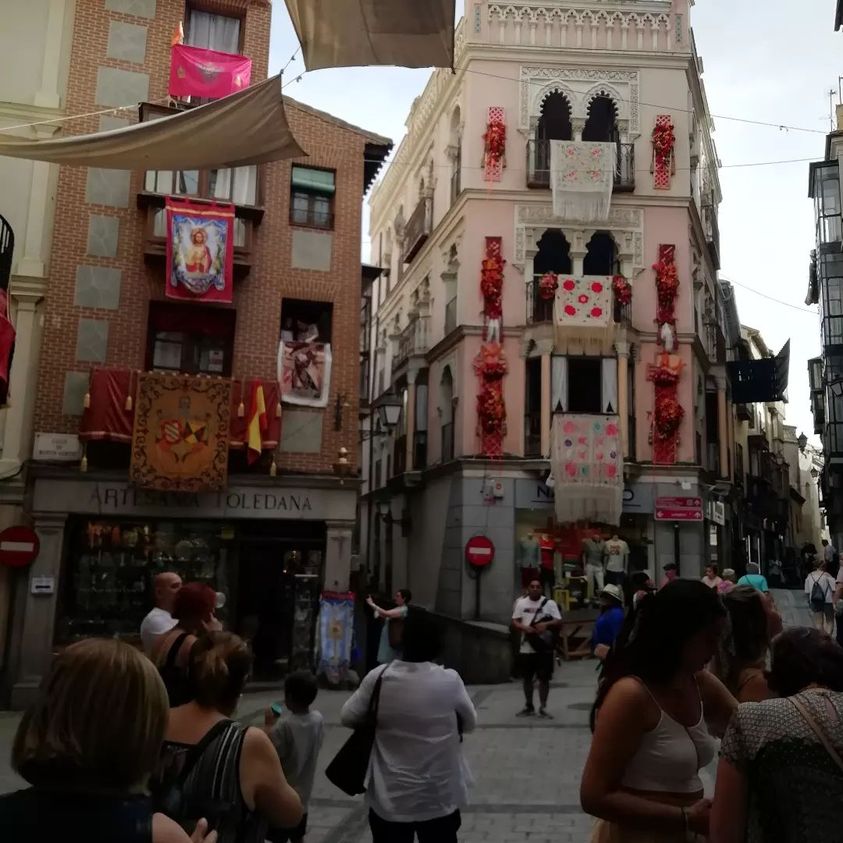 El hecho de que no hubiera demasiada gente por las calles del recorrido me permitió sacar alguna que otra fotografía con tranquilidad. Pero dado que me encontré con la procesión de la Tarasca, porque la tarde de la víspera del Corpus es su momento, las aglomeraciones por las calles se hicieron inevitables, porque la amplitud de las calles te obliga a pegarte a pared para permitirle el paso