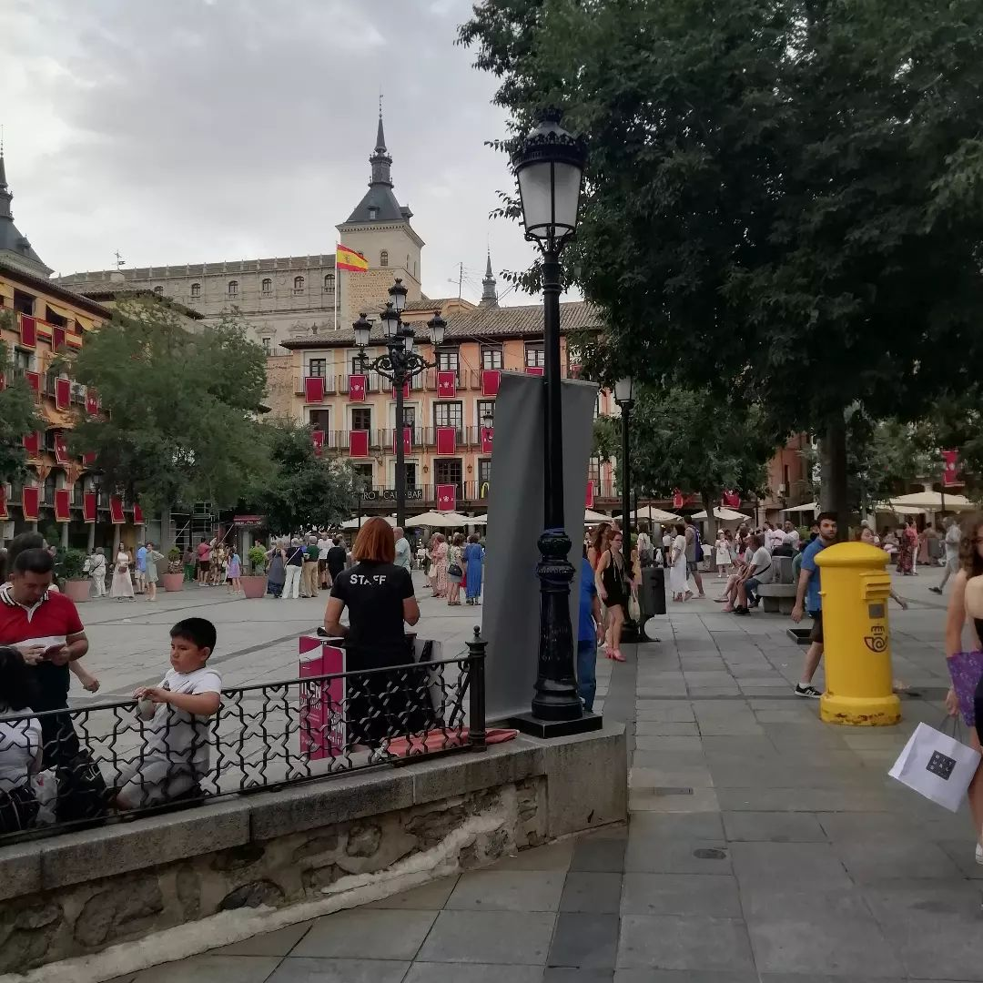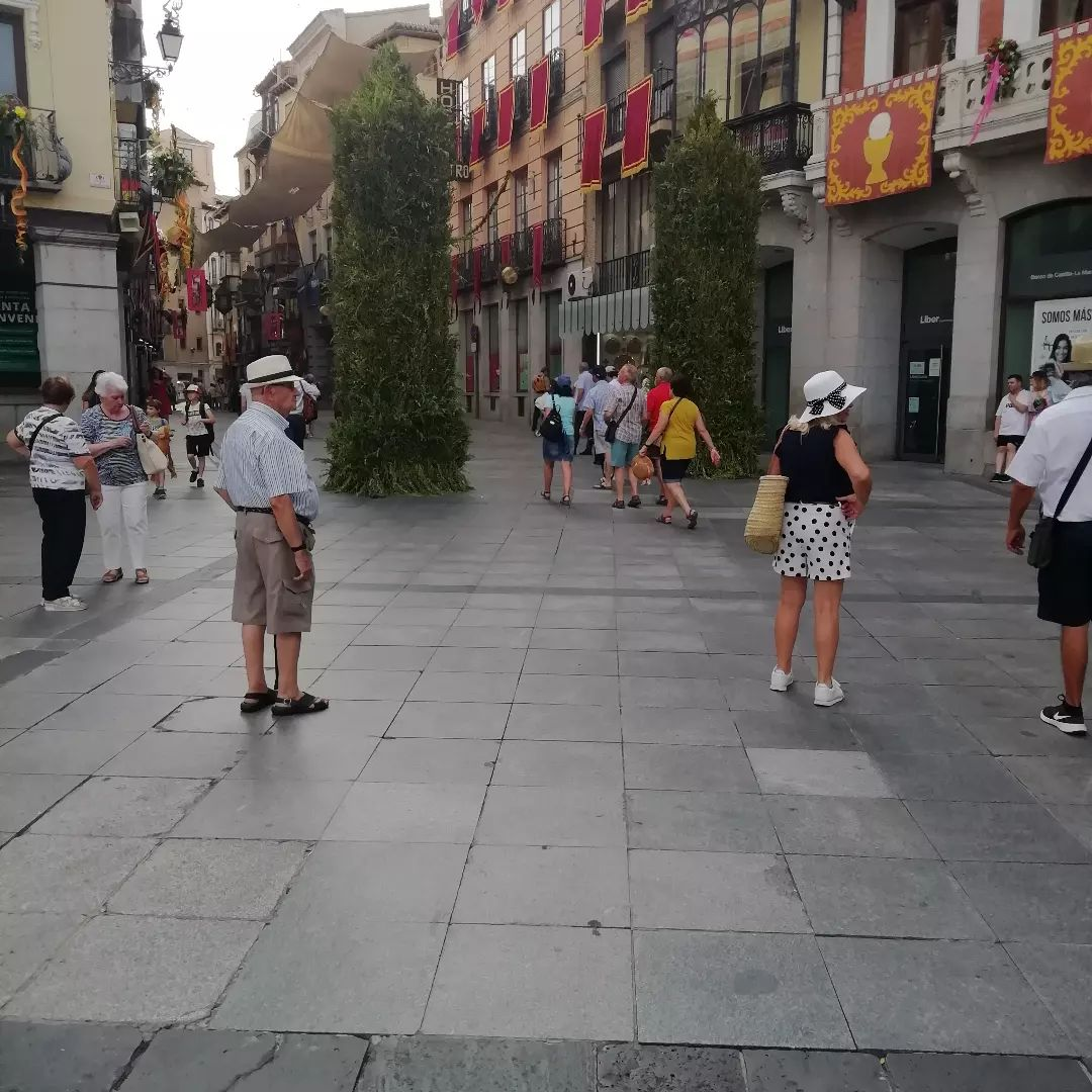 Ayer, víspera del Corpus, a media tarde, subí a dar una vuelta por el recorrido procesional, armado con mi móvil y la curiosidad de quien sabe con lo que se va a encontrar, pero que también se deja sorprender. Puede decirse que es la primera vez que he hecho todo el recorrido, al menos hasta ahora no lo he incluido entre mis costumbres de estas fechas ni ha sido algo que haya hecho con intención. De hecho, por las horas de eran 18:30 había bastante menos gente de la que esperaba, pero entiendo que debido al calor hubo quien prefirió esperar a que refrescase un poco. La diferencia se percibe en las dos fotografías que saqué de la plaza de Zocodover.