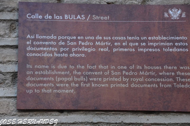Se llama así esta calle porque en una de sus casas tenía un establecimiento el cercano Convento de San Pedro Mártir, y en este lugar era en el que se imprimían las “Bulas”.