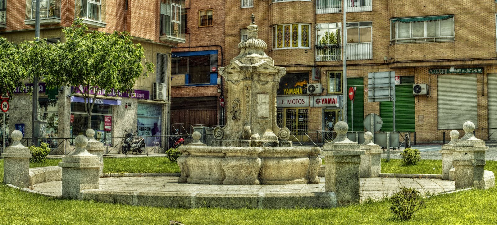 Aquí en el paseo de la Rosa, frente a la estación del tren se encuentra otro de esos rincones extramuros que forman parte de la historia de la ciudad, hasta el punto de que cuenta con su propia leyenda y por eso me quiero detener en este punto, dedicarle una entrada del blog, ya que se entiende que ésta es una de las vías de acceso a la ciudad. La zona se ha modernizado en los últimos tiempos, pero se ha mantenido la fuente, situada en medio de una rotonda, a las puertas del aparcamiento de la estación.