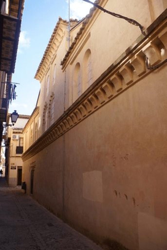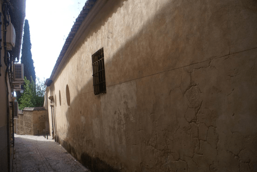 Santa María la Blanca es un templo construido en el barrio judío de Toledo en el 1180, como sinagoga que, habiendo funcionado como tal durante 211 años, fue expropiada y transformada en iglesia como consecuencia del pogromo de 1391. En 1550 se acometió una reforma atribuida a Covarrubias para instalar un beaterio, que al menos estuvo funcionando hasta 1637.