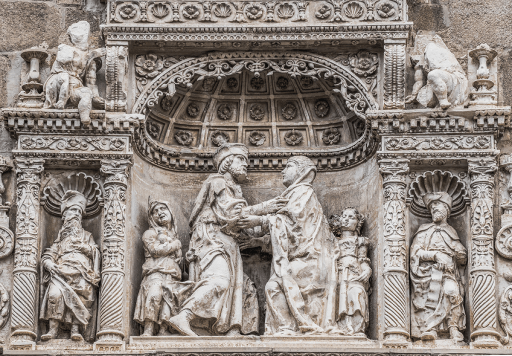 El cardenal Mendoza siempre veneró la imagen de santa Elena con la cruz y tanto en la grandiosa portada del Museo como en su tumba en la catedral están presentes, convirtiéndose casi en un segundo escudo del gran cardenal (1428-1495).