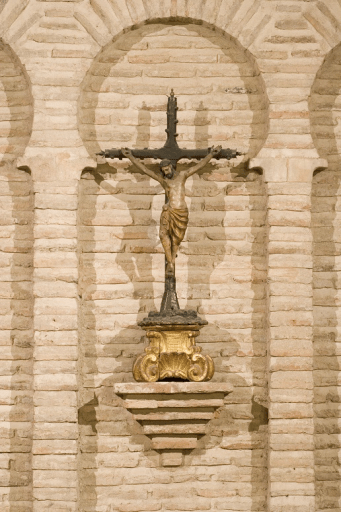 Tiene muros de mampostería y ladrillo con puertas enmarcadas en arcos de herradura polilobulados. Cuenta con tres ábsides semicirculares cuyos exteriores los constituyen pisos de arcos de distintos tipos (de medio punto, apuntados y polilobulados).