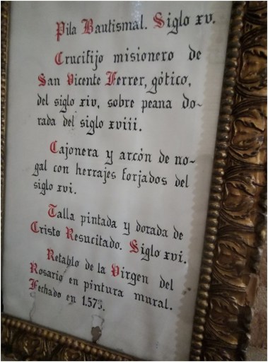 En el centro del crucero, en el lugar con mayor sonoridad se encuentra un original y antiguo púlpito. Bellísimo ejemplar de yesería gótico-mudéjar que conserva restos de policromía original. Se apoya sobre un fuste de pizarra azul y un capitel invertido y el tornavoz presenta idéntica decoración. En él predicó San Vicente Ferrer, del que se conserva una talla al pie de la nave, en 1403, “logrando de los judíos una conversión milagrosa”.
