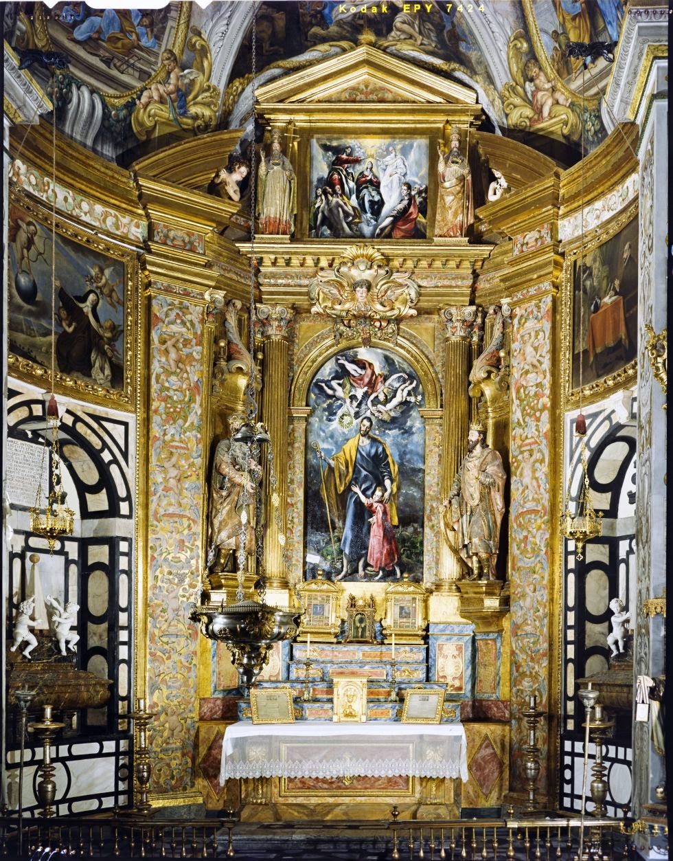 Los retablos y pinturas de su interior fueron encargados al Greco en 1597. En el retablo central, considerado como el más innovador de los realizados por El Greco, se muestran los dos únicos lienzos originales del pintor que hoy se conservan en ella, San José con el Niño y en el ático una Coronación de la Virgen. Los cuadros de los retablos laterales, San Martín y el mendigo y la Virgen con el Niño, Santa Inés y Santa Martina, fueron adquiridos a comienzos del siglo XX por la National Gallery de Washington.