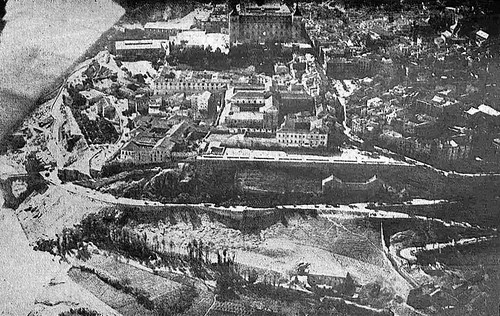 Ya he comentado esta curiosidad o anécdota en alguna que otra entrada del blog, porque me parece curiosa y oportuno hacer mención a ello en esta entrada, porque, en cierto modo, me siento responsable involuntario de la transformación que ha sufrido este edificio en los últimos años. El 10 de agosto de 2007 yo me choqué contra el muro que protege la subida de la calle de Real del Arrabal, de posibles caídas, cerca del paseo Miradero. En mi defensa diré que, según consta, las obras ya habían empezado y que el golpe tampoco fue para tanto. Supongo que no me fijé en los operaos que estaban desmantelando el edificio y por eso me ha quedado esta sensación de culpa.