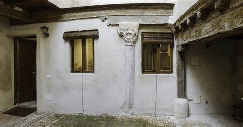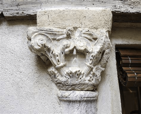 En el interior, tras pasar un corto pasillo-zaguán, me agacho prudente, para pasar bajo una de las muy someras vigas principales del patio. Aquí llama mi atención, esta vez por lo bueno, un extraordinario capitel “a lo romano”. Una pieza magnífica, de bello mármol tallado, de cronología incierta para este observador inexperto. Lo apellido “a lo romano” por su espectacularidad pero puede ser un elemento de cantería islámico. Arriba, en una vivienda de la planta superior hay arcos de herradura que pueden consolidar la idea de que esta casa tiene trazas moras. No obstante, las proporciones del capitel y su belleza parecen pensadas para un edificio de proporciones más grandes y quizás de más entidad.