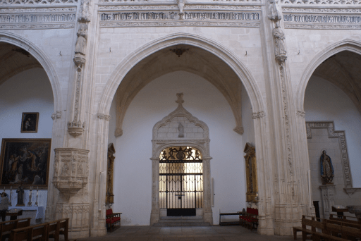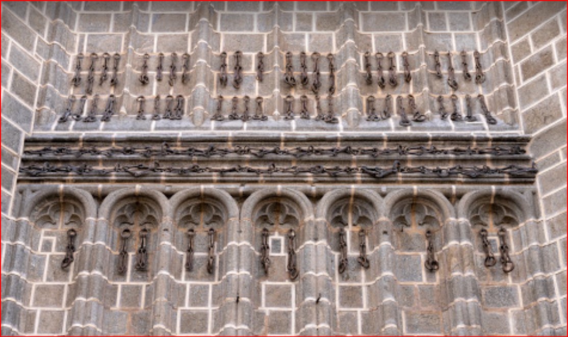 “De los muros exteriores penden cadenas y grillos de los cautivos cristianos de Granada, puestos allí en memoria suya, que no bastarían dos carros para llevarlos.” El viajero Münzer describía asombrado este curioso exvoto: las cadenas de los prisioneros cristianos liberados por don Fernando en Marbella y otras plazas andaluzas, mandadas colocar aquí por la reina en 1494.