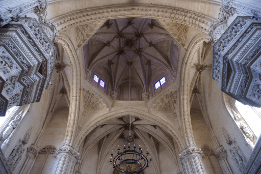 Es de planta poligonal (octogonal) sobre trompas y nervios que forman una estrella que recuerda estructuras mudéjares.