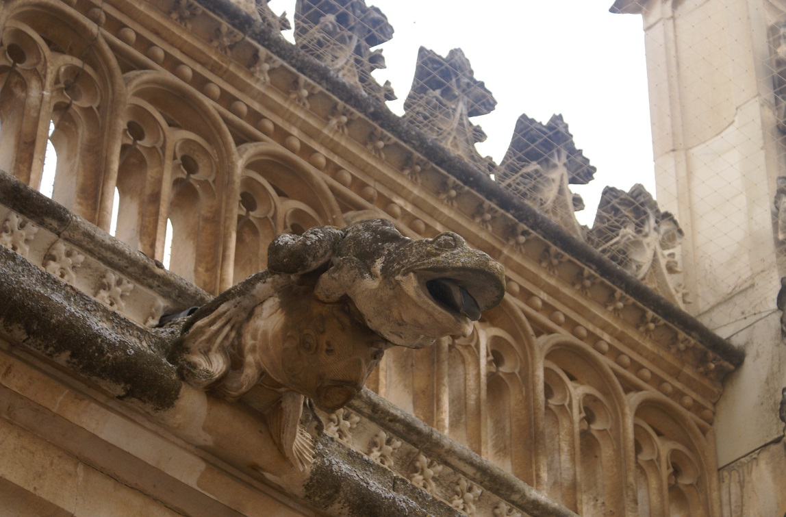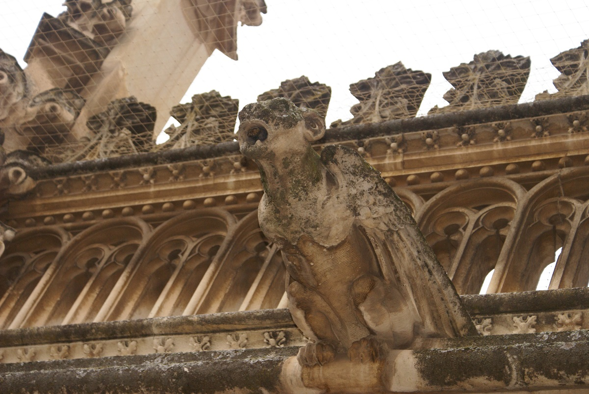 El paseo sosegado por sus pandas regala toda la belleza de sus filigranas en piedra y reserva numerosas sorpresas en representaciones humorísticas de animales: dragones, simios, aves fantásticas… talladas por el escultor toledano Cecilio Béjar, quien también trabajó hasta 1967 en la restauración de las imágenes de los santos que pueblan el claustro bajo. Especial ingenio se despliega en las gárgolas, ejemplares únicos y llenos de fantasía.