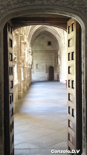 el escudo del reino de Castilla y la inscripción Monta Tanto. Claustro Alto.