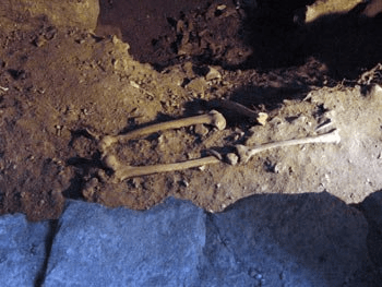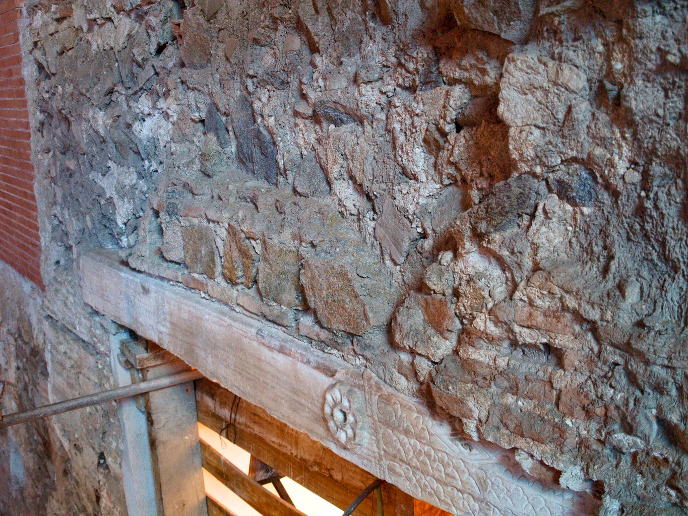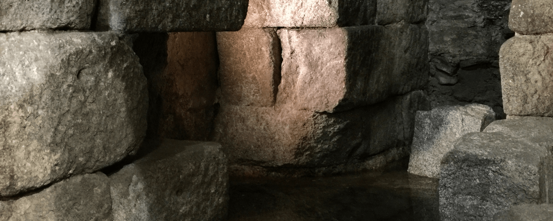 En uno de los muros dotados de grandes sillares de granito aún se puede observar el agujero que los exploradores del sigo XVI dejaron al retirar algunos de estos sillares buscando el acceso a las galerías mencionadas en las leyendas.