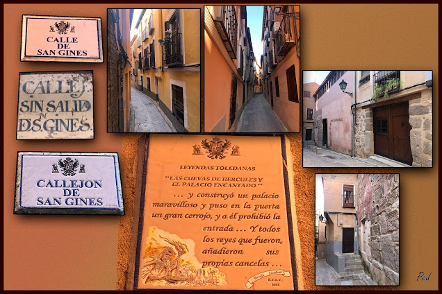 Calle y callejón de San Ginés. Ambas con medidas de callejón toman el nombre de la «mezquita» de San Ginés, después iglesia de San Ginés, ambas hoy desaparecidas, que se encontraban en el entorno de lo que hoy conocemos como Cuevas de Hércules, espacio estudiado y conservado por el Consorcio de Toledo. Para más información: