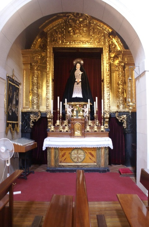 Está cubierta por una cúpula barroca sobre pechinas, decoración de óculos y rocalla y linterna con tambor. Posee un retablo barroco del S. XVIII.