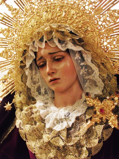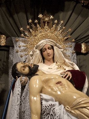 La espléndida escultura, que representa uno de los momentos más humanos de las solemnidades de la Semana Santa, impresiona profundamente a las personas que la contemplan en su recorrido procesional. Esta impresión, no es solo por la belleza de la talla, ni por lo atractivo de su adorno, radiante de flores y de luces, ni por el momento de la noche primaveral de la mística Imperial Ciudad; es por el dolor, por la angustia que muestra su rostro en el instante de la santa tragedia, de una madre que llora por el hijo muerto, en sus brazos.