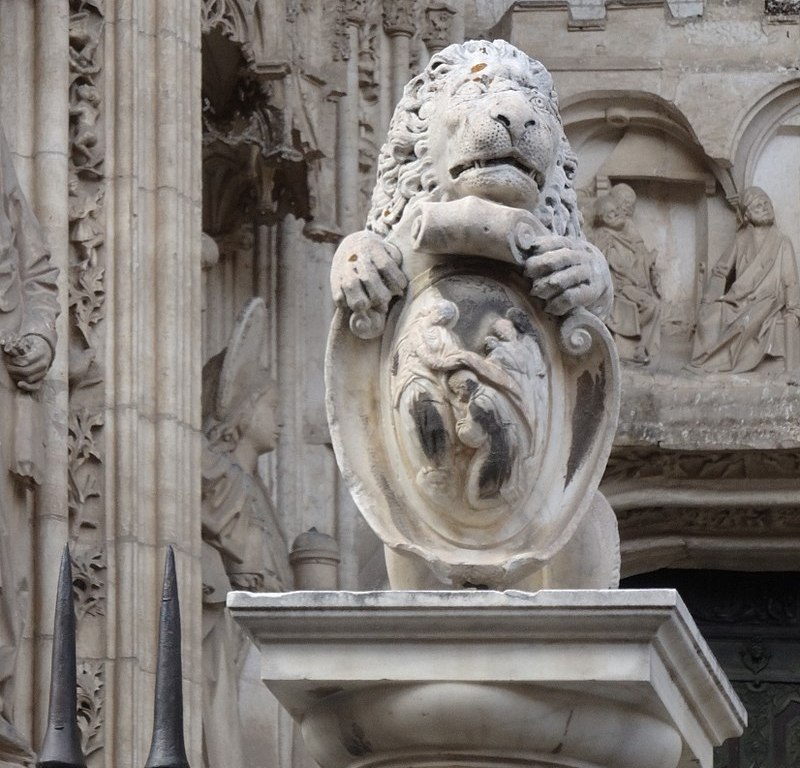 Pasamos al otro lado del crucero de la catedral, a la puerta de los Leones, a la calle cardenal Cisneros, porque es otro de esos rincones de la catedral dignos de una visita tranquila y pausada tanto por el exterior como por el interior, con la tranquilidad de saber que hasta ahora no ha habido noticia de que estos leones muerdan, aparte que tampoco tengo constancia de la frecuencia ni los motivos con los que se abre esta puerta. Abierta o cerrada es de visita obligada.