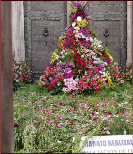 De fondo el rosetón de la puerta de los leones