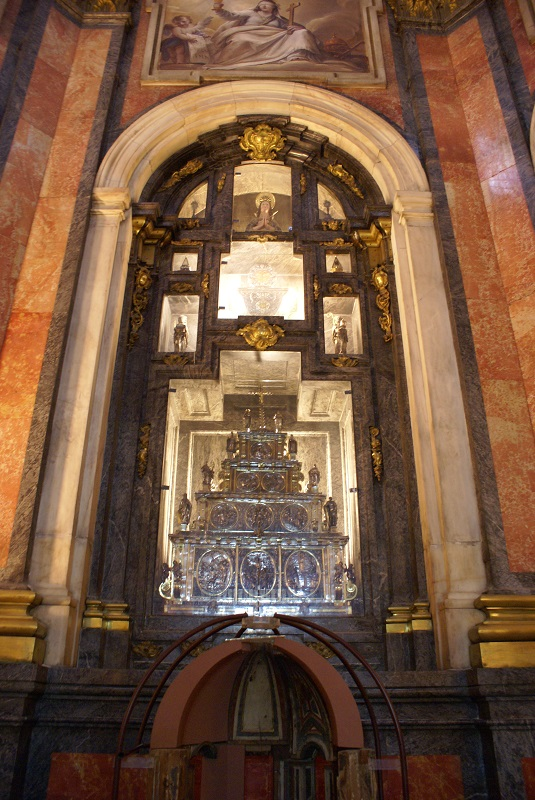 La estancia como su propio nombre indica es un majestuoso monumento de planta ochavada, recordando que el “8” es símbolo de eternidad, reservado para albergar las reliquias de aquellos que fueron mártires y testigos de Cristo. Las reliquias nos acercan a la memoria de los Santos, a las tradiciones que testimonian y al recuerdo de las personas que las veneraron. El santo es el intercesor e intermediario, necesario y suficiente, para que la oración del fiel llegue a Cristo redentor.