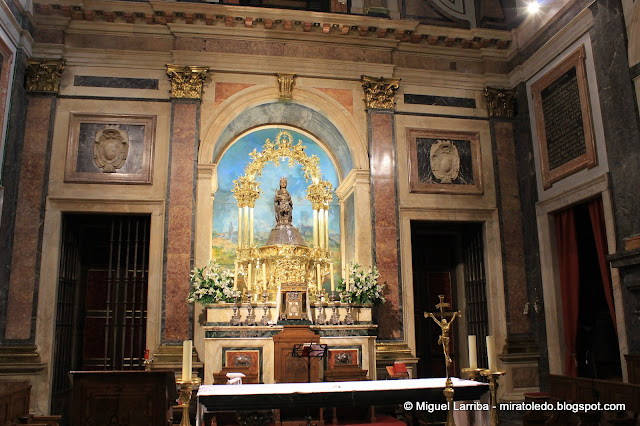 A célebre imagen á que con predilección sin límites ha consagrado solemnes cultos siempre el pueblo de Toledo, estuvo colocada primeramente en el altar principal, ó mayor, de la antigua basílica: en este sitio vino, según la tradición, á abrazarse á su imagen la Madre de Dios cuando bajó á poner la admirable casulla á su acérrimo defensor San Ildefonso.
