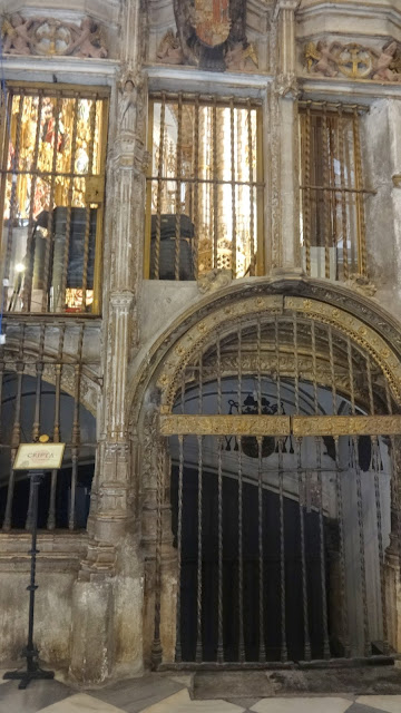 Seguimos en nuestro empeño de llamar a todas las puerta, de probar en todas las cerraduras, de no dejar ni un rincón en el que podamos adentrarnos todo lo que nos dejen. De manera que, si el otro día ya estuvimos en el Ochavo viendo los tesoros que guarda la catedral, una capilla que no es accesible para las visitas y nosotros «nos colamos» porque se dejaron la puerta abierta en un descuido. Ahora no vamos a ser menos curioso y hacer lo propio con esa reja que hay tras el altar de la catedral.