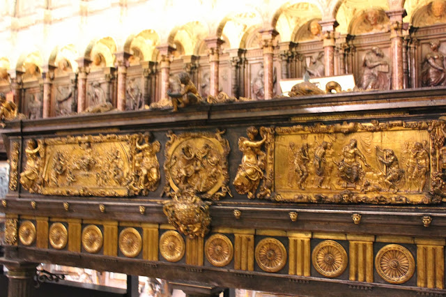 El sitial del arzobispo de Toledo que lo preside es una preciosidad en donde podéis comparar el arte de Vigarny con el de Berruguete