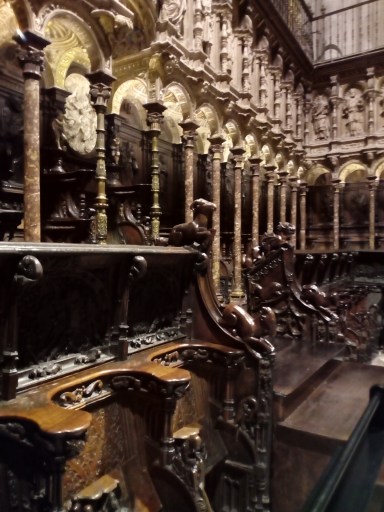 Sin embargo dicho lo dicho, el coro es una maravilla, posiblemente el más bonito del mundo. Se accede a él a través de una preciosa rejería, obra de Domingo de Céspedes de 1548