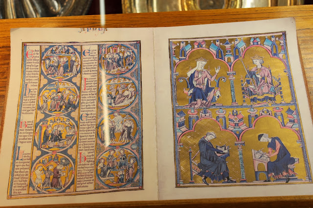 Esta bellísima Biblia Rica de san Luis rey de Francia hecha en 1265, regalo que recibió el rey Alfonso X el sabio,que consta de tres volúmenes,bellamente pintados ,con mas de 5.000 panes de oro