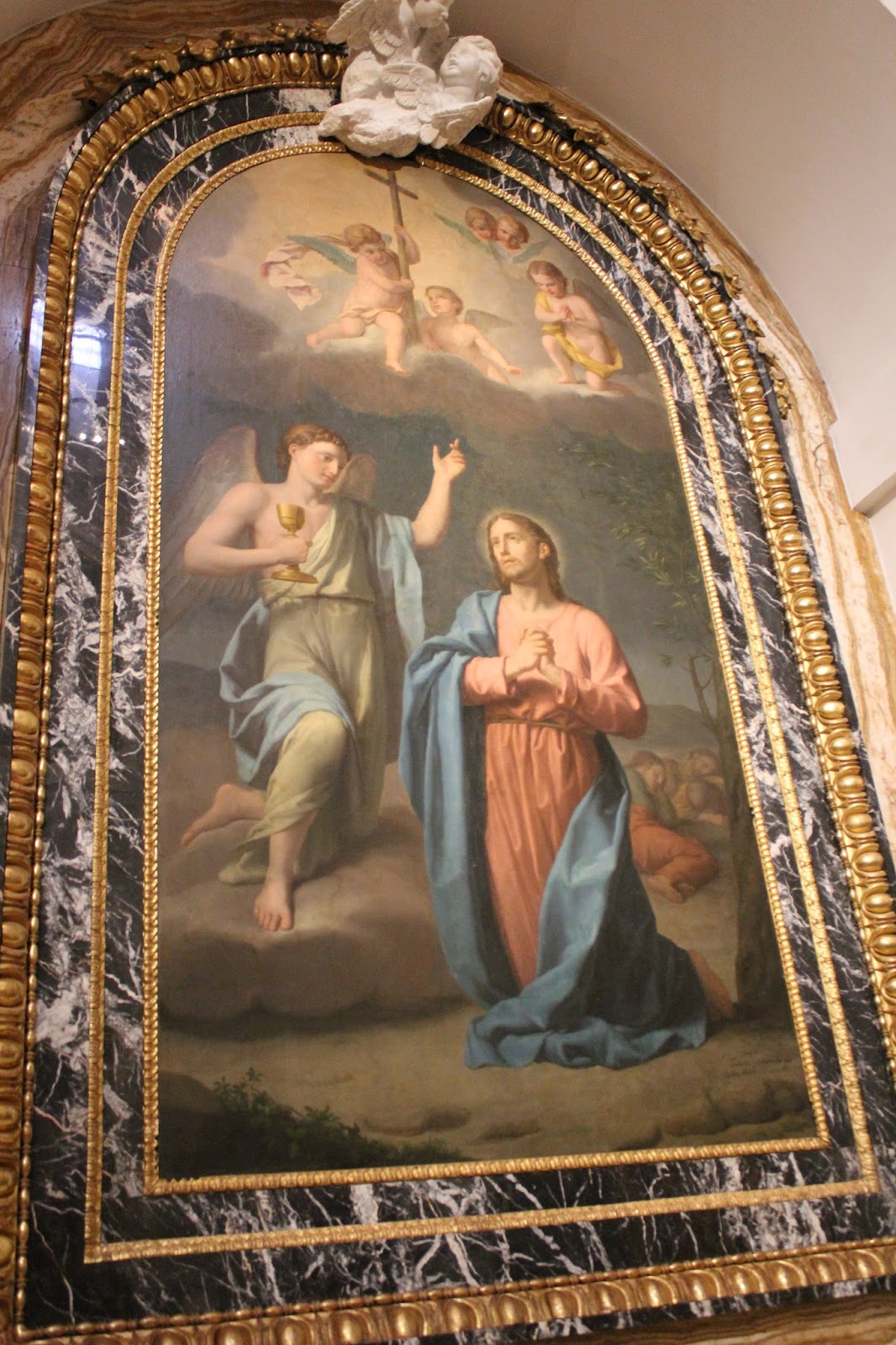 En frente del cual ,en otra hornacina similar, veremos este bonito cuadro de Francisco Javier Ramos del s.XVIII «la Oración en el huerto»