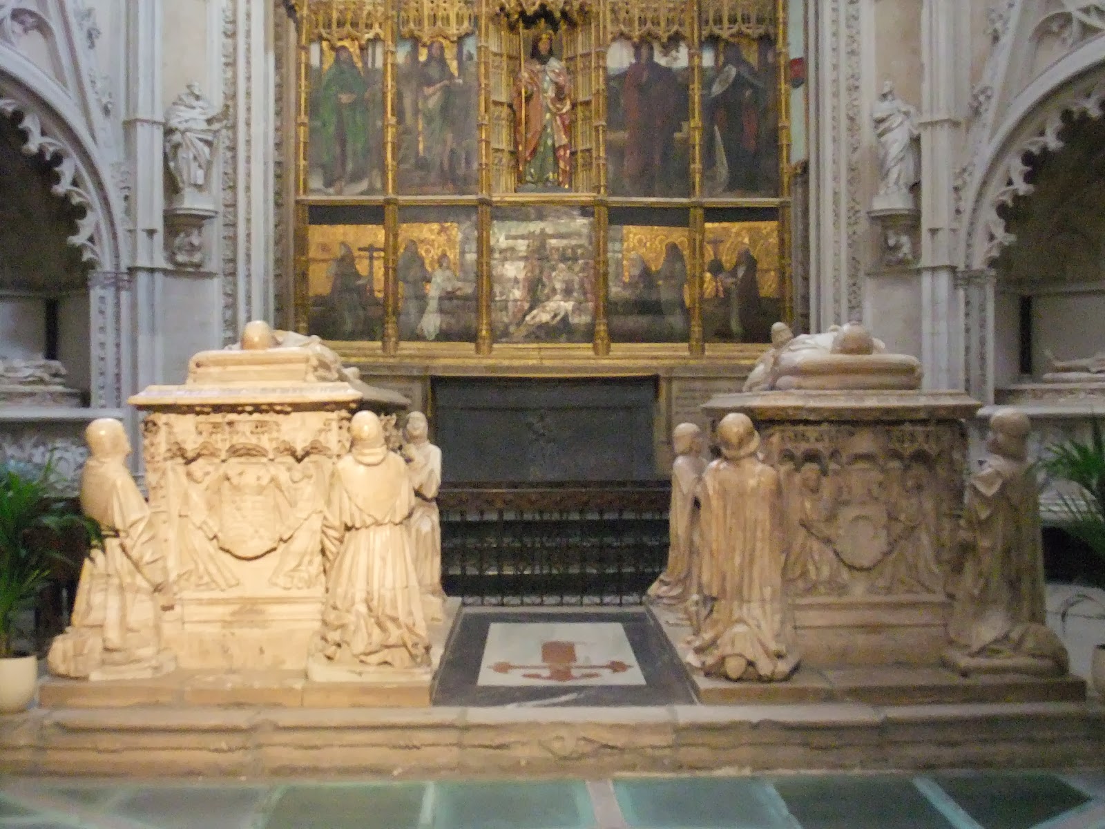 Los dos sepulcros exentos que están en el centro de la capilla corresponden al Condestable Álvaro de Luna y a su esposa Juana de Pimentel. Los bultos yacentes son esculturas hispanoflamencas de Pablo Ortiz y Sebastián de Almonacid. Las figuras orantes de las esquinas son de mucha calidad; en la del Condestable son caballeros de Santiago y en la de su esposa son frailes franciscanos.