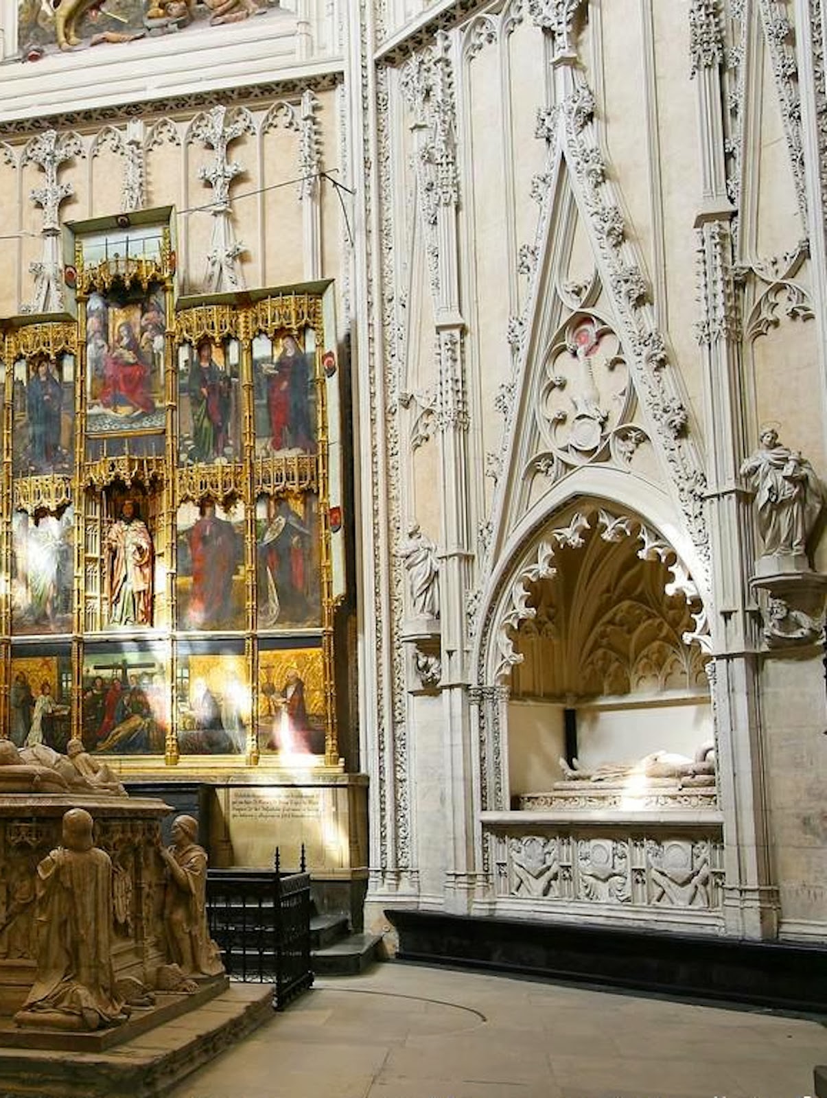 Álvaro de Luna encargó su propio sepulcro, en bronce, situado en medio de la capilla, para el cual fue elaborado, también en bronce, un bulto redondo de su persona, que era un artilugio extraño, pues la estatua yacente se levantaba y se ponía de rodillas, mediante un mecanismo especial, en el momento en que empezaba la misa, volviéndose a tender cuando acababa la ceremonia.