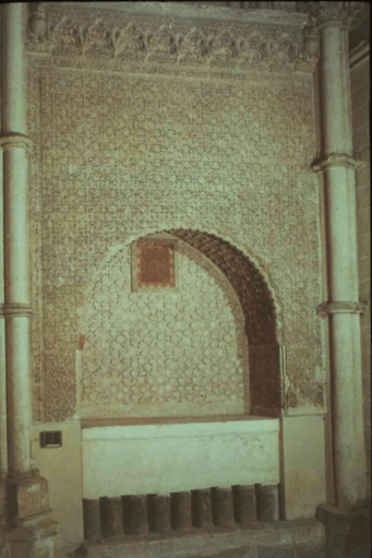 • Se trata de un arco angrelado tipo granadino o sevillano, enmarcado en fachada rectangular, trabajado en yeso con temas geométricos (lazos de 8) y un friso de mocárabes entre dos leones sentados vistos de frente. Una cenefa circunda el sepulcro con una inscripción en árabe. Dentro del arco se encuentra la urna y por encima una lápida con el epitafio del alguacil mayor de Toledo Fernán Gudiel fallecido en 1278.