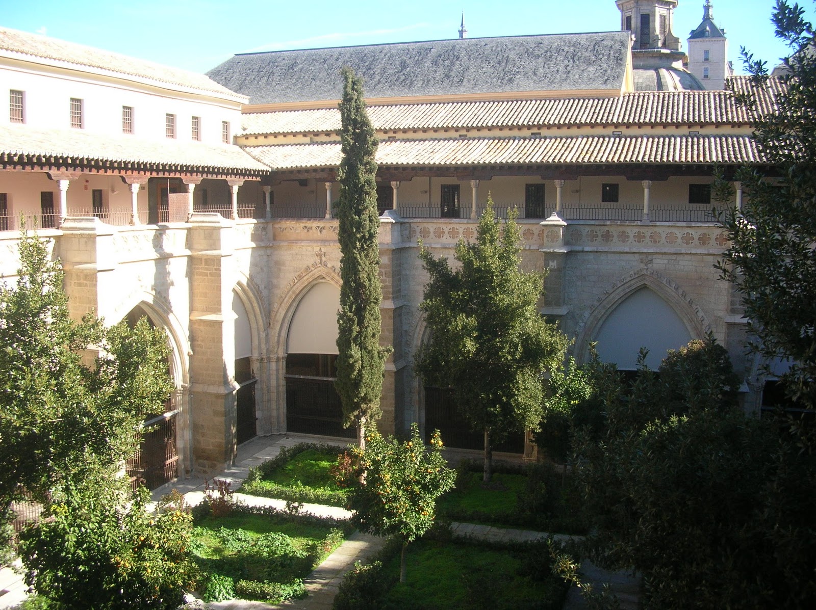 “Finalmente en el ángulo de este claustro contiguo a la capilla de San Pedro, hay aulas magníficas fabricadas sobre la primera ábside, o nave; de la bóveda de cuyo ábside se levanta un pasadizo murado, o cubierto, hermosamente labrado, que pasa a la segunda, el cual se dice que edificó el arzobispo don Francisco Ximénez, para que desde él la cristianísima reina doña Ysabel, bisabuela de Vuestra Alteza pudiese oír misa, y asistir a los demás oficios divinos, porque desde él se alcanza a ver, y adorar el altar mayor, y principal de la iglesia”.