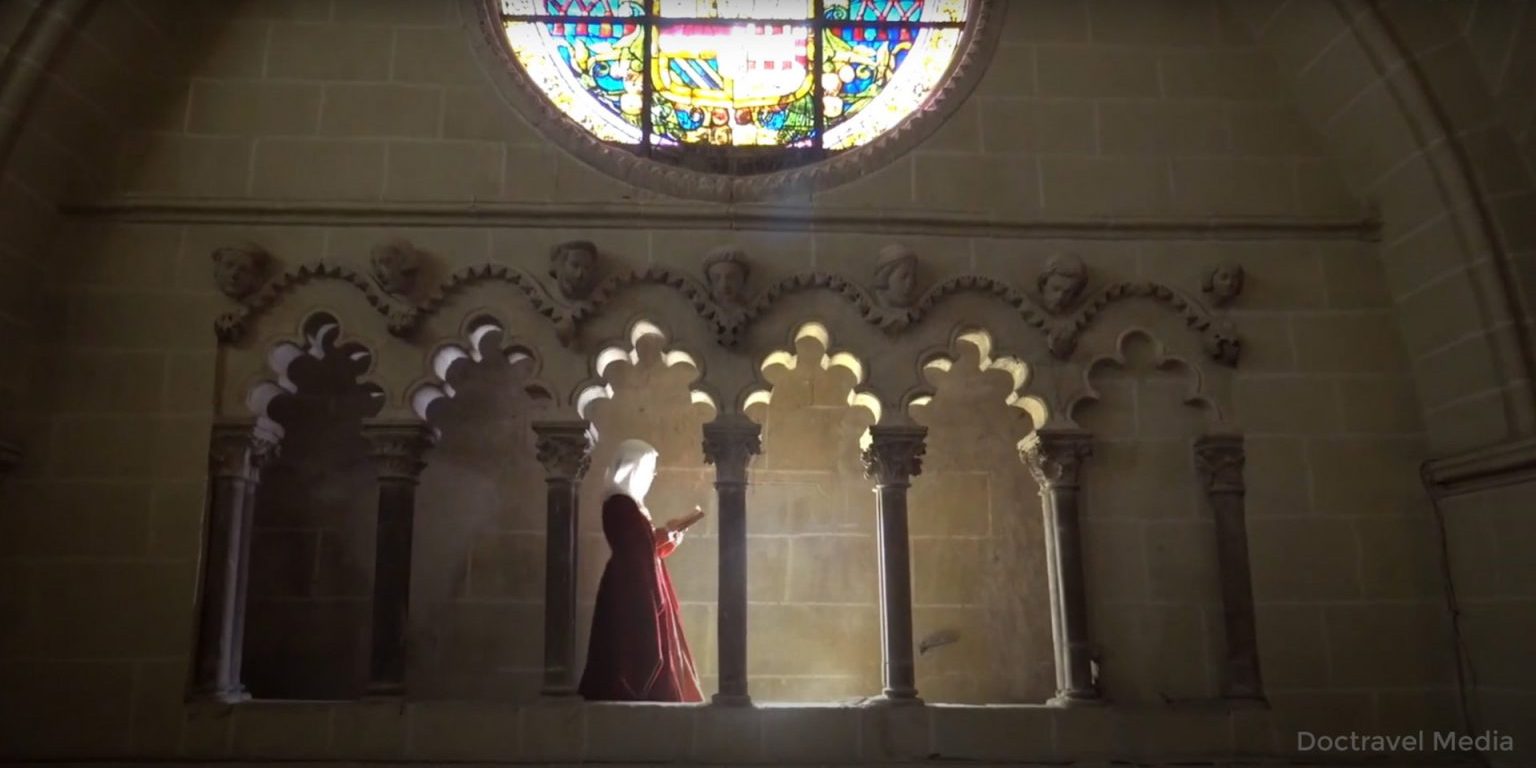 En esta zona del claustro alto se ha recuperado uno de los espacios más espectaculares de la visita: Los que eran aposentos de la reina Isabel II cuando visitaba la ciudad imperial. Habitaciones que se encuentran tras las vidrieras que a su vez tapan parte del triforio, y que dan acceso al curioso balcón desde el que la reina oía misa.