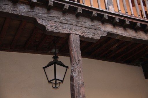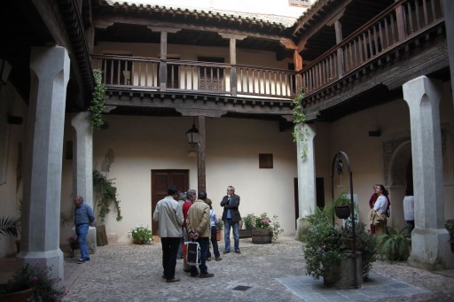 El patio-claustro que visitamos se llama de la Enfermería, ha sido restaurado por el Consorcio de la Ciudad de Toledo. Es el núcleo central del palacio edificado por Don Pedro Suárez de Toledo, hijo de Don Diego Gómez y Doña Inés de Ayala. Esta identificación se ha hecho gracias a la decoración heráldica que aparece en el alfarje de la galería baja del patio. La cronología la fija Martínez Caviró entre 1374 y 1375.