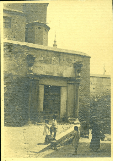 Éstas son otras fotos antiguas de esta portada renacentista de frontispicio de vuelta redonda en su emplazamiento original: