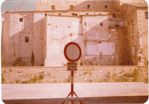 En los años de auge automovilístico la plaza se usaba como aparcamiento indiscriminado. Mi padre puso empeño en ganar ese espacio para el peatón, y fotografió la plaza cuando se prohibió aparcar allí: