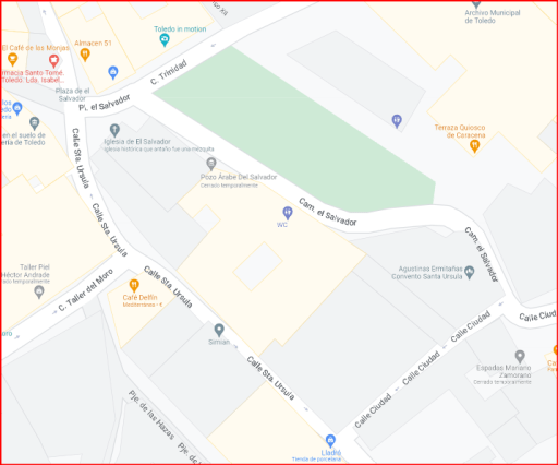 Éste es el caso de una calle de Toledo, muy céntrica, pero absolutamente desfigurada hoy en día con respecto al aspecto que presentaba en los siglos pasados. Se trata de la durante siglos denominada Cuesta de la Portería de la Trinidad, callejuela entonces estrecha y misteriosa convertida hoy en amplio espacio urbano con las denominaciones de Plaza y Calle del Salvador.